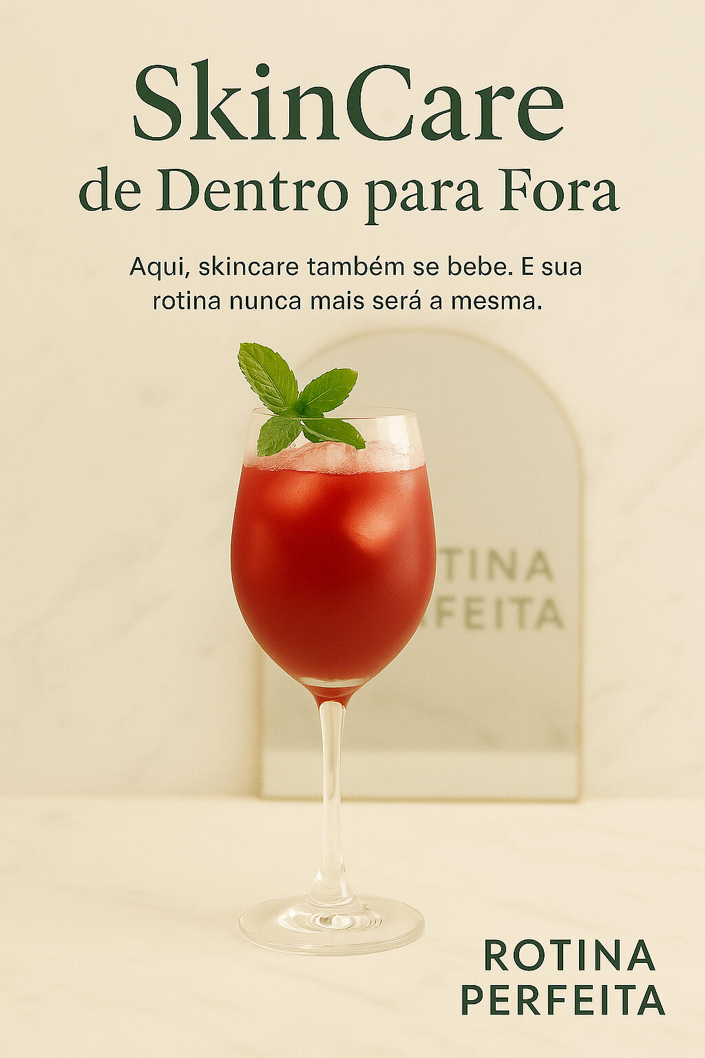 Para uma transformação completa, você recebe junto ao seu cronograma de skincare 100% personalizado o e-book exclusivo - Skincare de Dentro para Fora. - Descubra receitas de sucos funcionais que complementam seu cronograma tópico, promovendo saúde e luminosidade da pele através da nutrição interna.